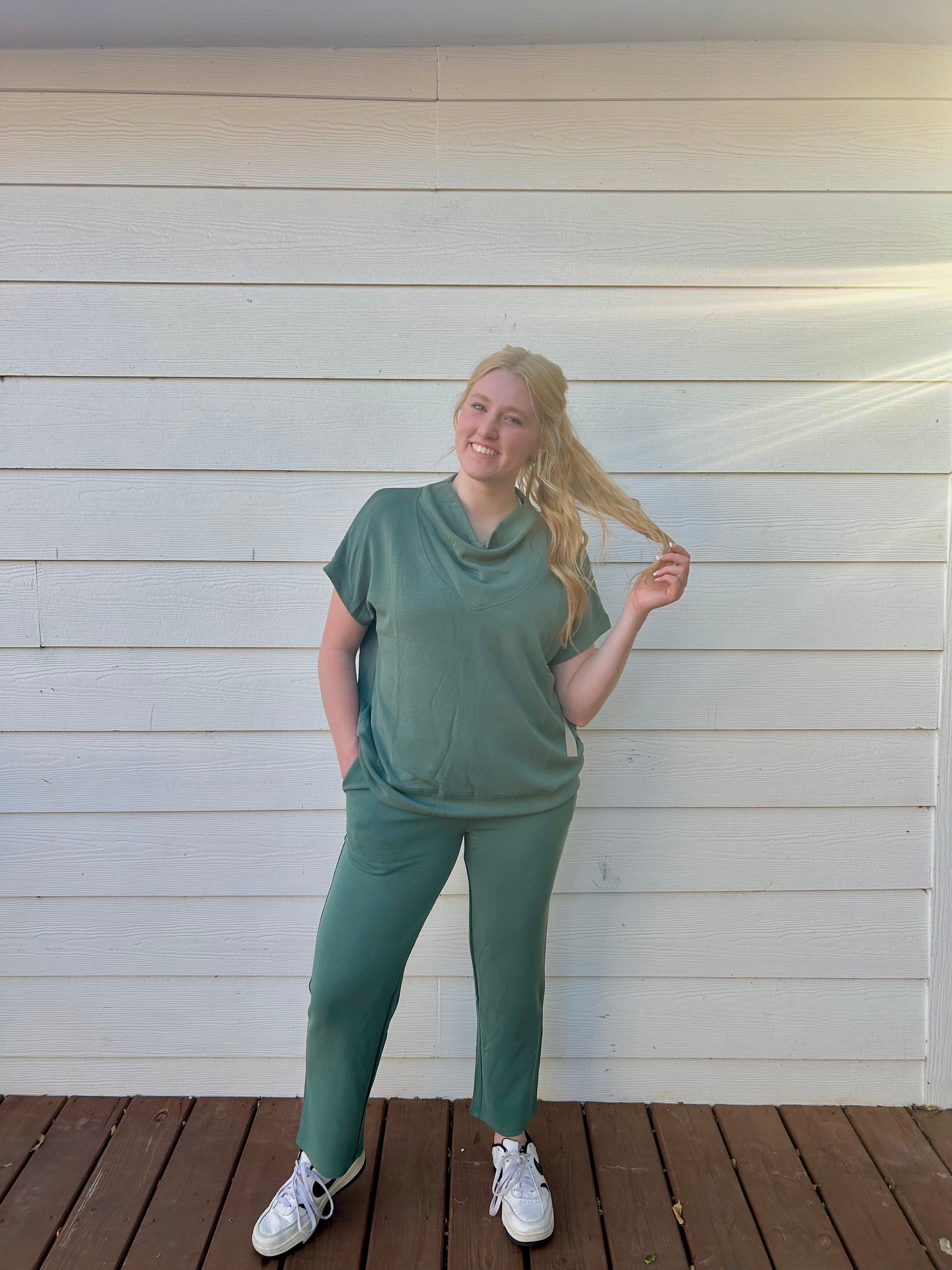 Effortless elegance meets all-day comfort in the Laguna Luxe Set. Crafted from our buttery-soft scuba modal blend, this two-piece set includes the Laguna Cowl Neck Top and Laguna Soft Drape Cropped Pants — both designed for a fluid drape and silky-smooth feel that moves with you. The relaxed cowl neckline and cropped pant length bring a touch of modern polish, while the Silky Pine hue adds a fresh, elevated tone to your wardrobe. Perfect for lounging, travel, or everyday sophistication — this set is your new definition of luxe ease.